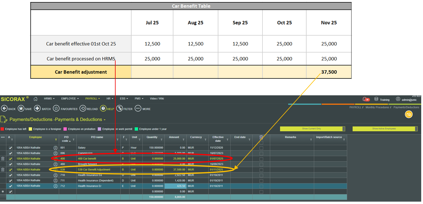 If you have applied the new car benefit values effective 01st October 2025 in July, August and September 2025. To correct this in November 2025 payroll, follow the steps below: