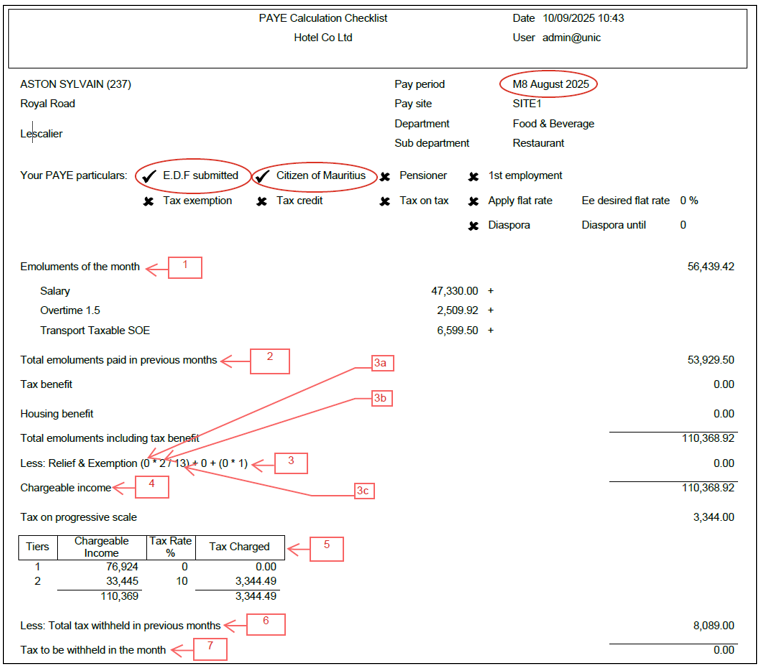 - Step 3: Ensure that the employee’s Reliefs and Exemptions are correctly applied according to their EDF.