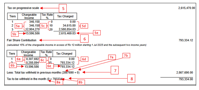 - Illustration E: Breakdown of the Tax to be withheld in the month
