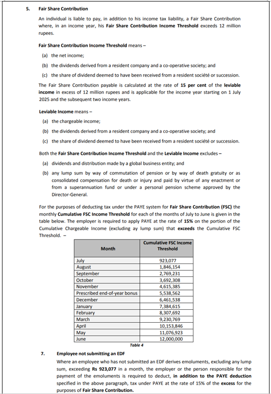 - Below is an extract of the MRA Circular letter to All Employers dated 6 October 2025 concerning the Fair Share Contribution