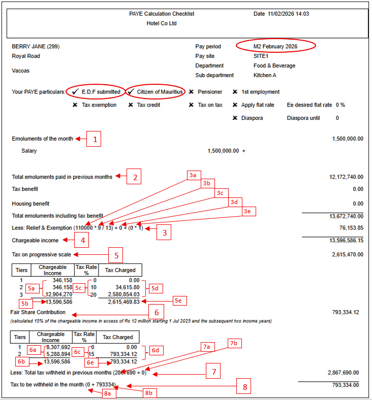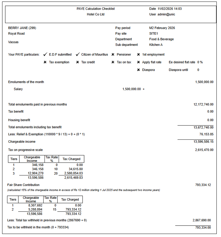 - Below is the PAYE Calculation Checklist for the month of February 2026, including the Fair Share Contribution. To better understand the figures, please refer to Illustration A below, which helps verify the breakdown of the PAYE Calculation Checklist.