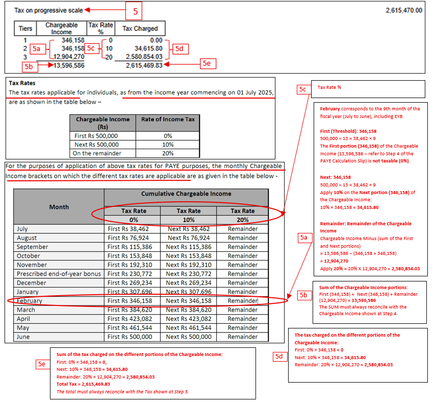 - Illustration A: PAYE calculation checklist breakdown for the month of February 2026