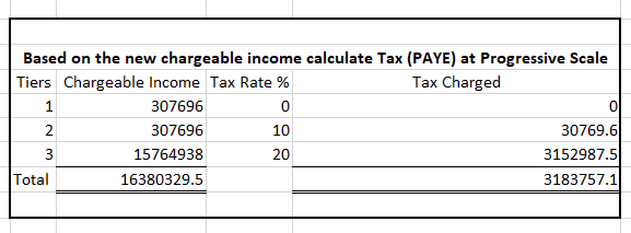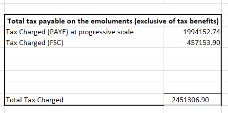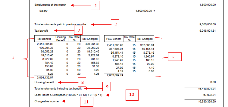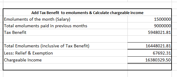- → Add the Tax Benefit (PAYE and FSC) to the emoluments for the purpose of calculating the chargeable income (inclusive of Tax benefit)