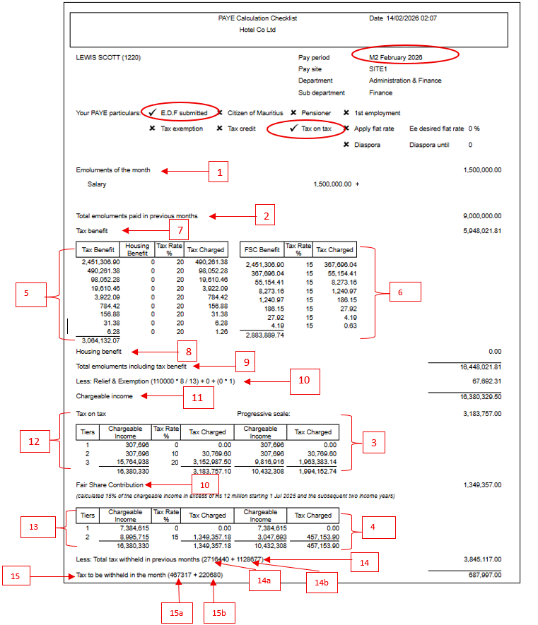 - Below is a PAYE Calculation Checklist including the Fair Share Contribution where the Tax Benefit applies.