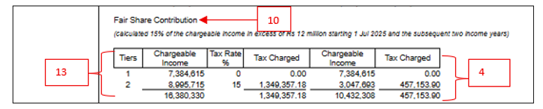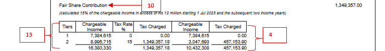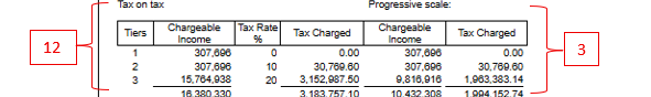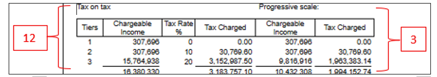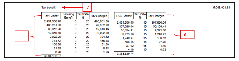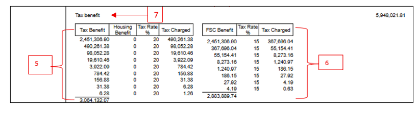 - → Use the Total Tax charged (exclusive of tax benefit) to verify the additional tax (PAYE and FSC) payable on the tax benefit: