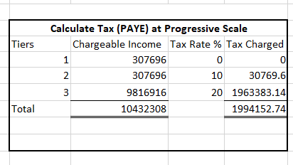 Excel illustration Tax PAYE calculation (exclusive of tax benefit)