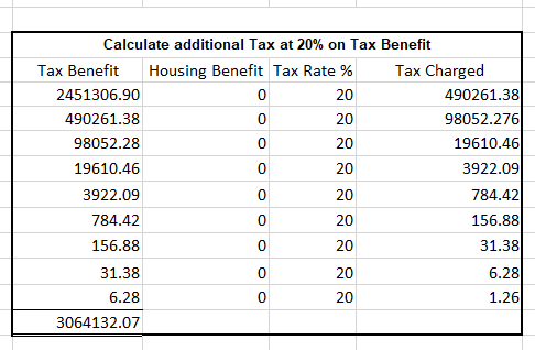 Excel illustration Tax charged on PAYE benefit