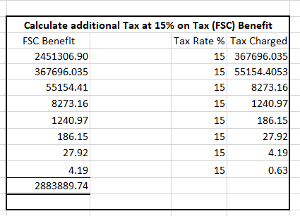 Excel illustration Tax charged on FSC benefit