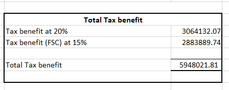 Excel illustration Tax (FSC) inclusive of tax benefit