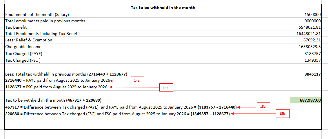 - → Use the chargeable income (inclusive of tax benefit) to verify the tax (PAYE and FSC) inclusive of tax benefit
