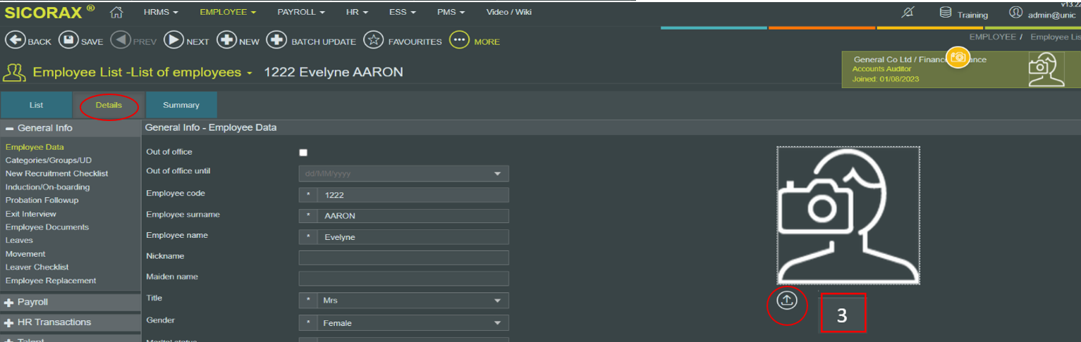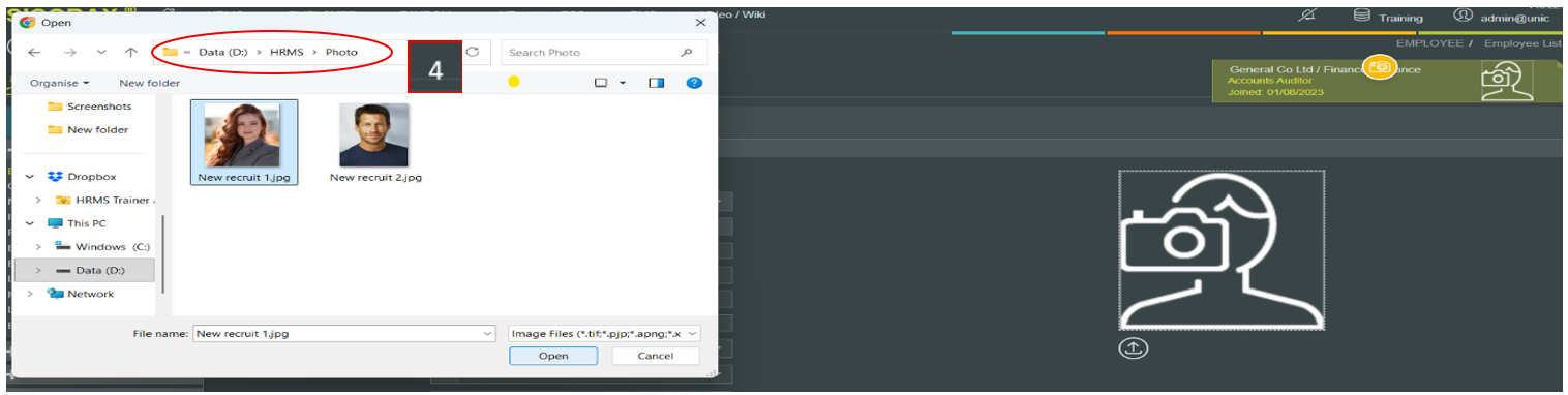 Steps to upload the employee photo