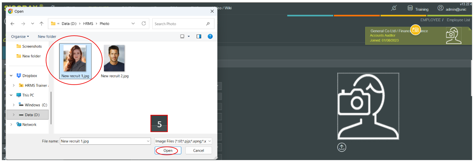 - Location: The employee photo should be saved on your local PC or server so it can be browsed and uploaded.
