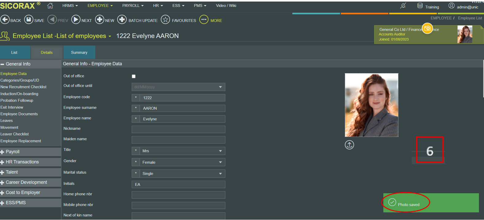 - 6.The photo will be automatically saved and displayed in the employee profile.