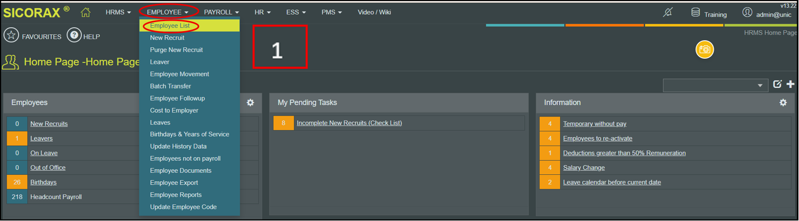 - 1. Go to menu Employee and select Employee List