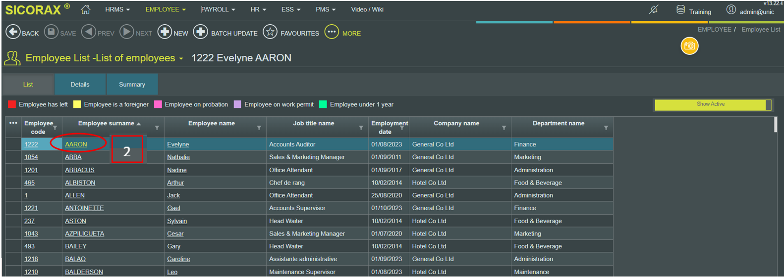 - 2. Locate the employee and click on the Employee’s Surname.