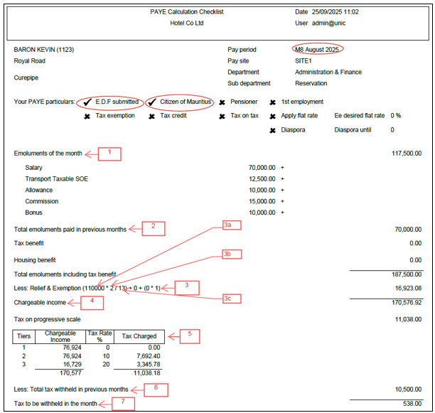 The illustration below shows how these exemptions are applied for August. Follow the steps below to verify the PAYE calculation checklist:
