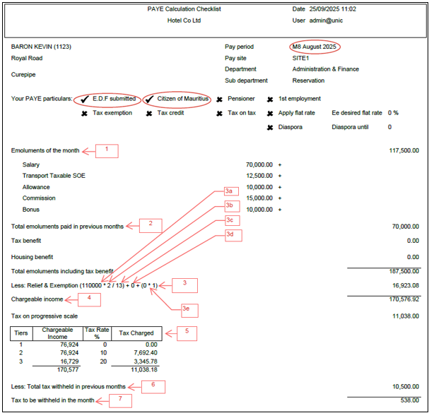 • Step 4: Ensure that the Chargeable Income correctly corresponds to the difference between the Total emoluments (including Taxable benefits) and the less Reliefs and Exemptions.