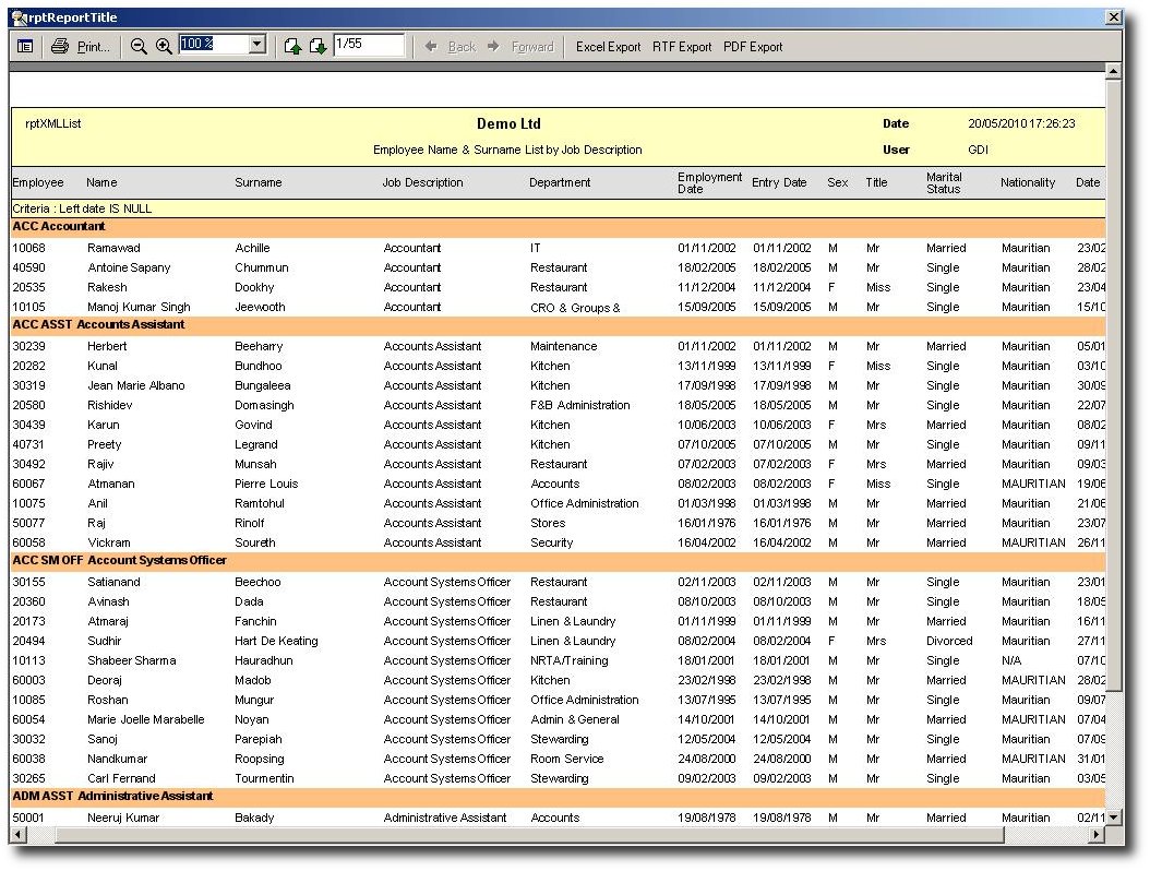 You are here: SKB Home » Human Resources » Procedure Guide » Reports » Employee List » Employee Lists Report (Name & Surname) By Job Description