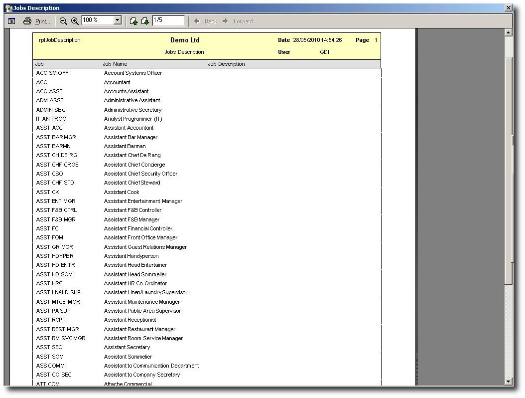 ← Back to Sample Report - Type Of Job Description