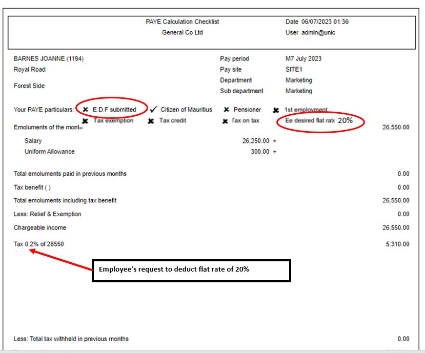 You are here: SKB Home » HRMS Payroll » Procedure Guide » Employee may request to deduct PAYE at a flat rate of 15% or 20% (Fiscal Year 2023-2024)